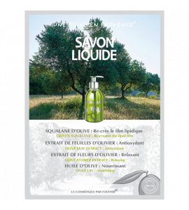 INGREDIENTS : Aqua/Water, Potassium Olivate, Potassium Cocoate, Parfum/Fragrance, Glycerin, Sodium Chloride, Olea Europaea (Olive) Leaf Extract, Squalane, Cocos Nucifera (Coconut) Oil, Olea Europaea (Olive) Fruit Oil, Olea Europaea (Olive) Flower Extract, Tetrasodium Glutamate Diacetate, Potassium Hydroxide, Potassium Sorbate, Sodium Benzoate, Citric Acid, Alcohol, CI 61570/Green 5, CI 19140/Yellow 5, CI 14700/Red 4, CI 17200/Red 33, Sodium Sulfate, Benzyl Alcohol, Alpha-Isomethyl Ionone, Linalool, Limonene, Amyl Cinnamal, Coumarin.